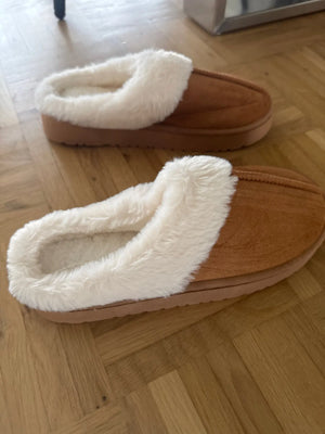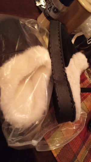 Surprisingly sturdy platform with soft lining; I walk around the house all day and my feet feel supported and warm.